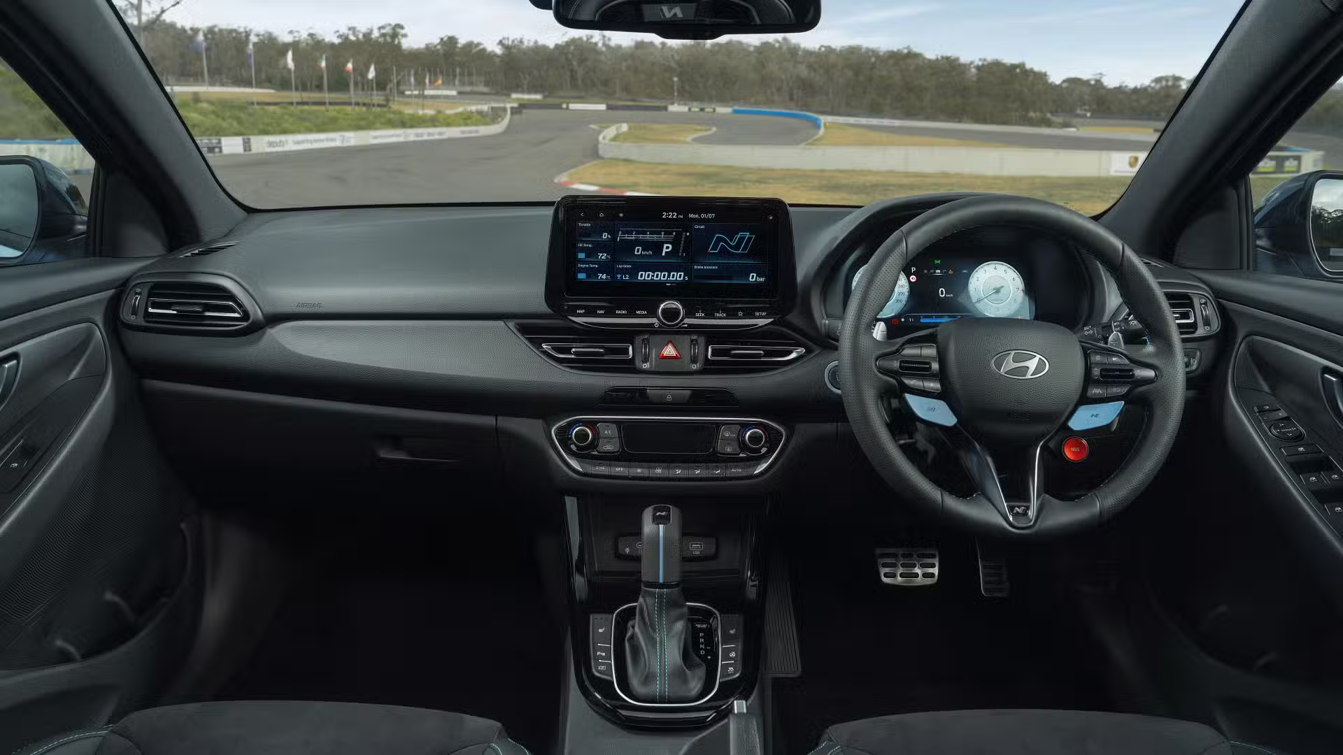 Inside, the i30 N continues to impress with Alcantara and leather-trimmed sports seats featuring new inserts and blue contrast stitching. Gloss black accents around the gear shifter and a leather-wrapped steering wheel add to the premium feel, while technological upgrades like Bluelink smartphone connectivity, including remote vehicle control and emergency assistance, ensure the i30 N remains at the forefront of modern automotive connectivity.