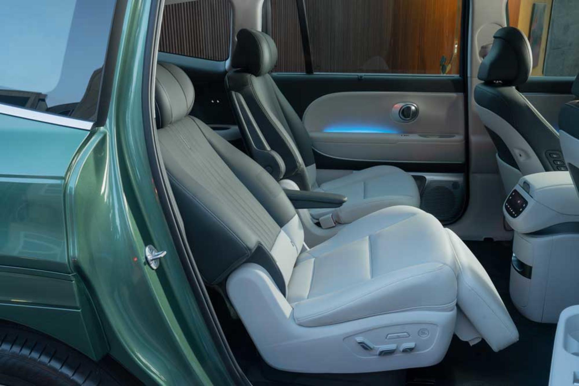 Whether you opt for the 6-seat version with reclining captain's chairs or the 7-seat variant with a versatile bench, every row in the IONIQ 9 feels like front-row seating. Second-row seats can fully recline with leg rests, delivering a “zero-gravity” position that rivals business class travel.