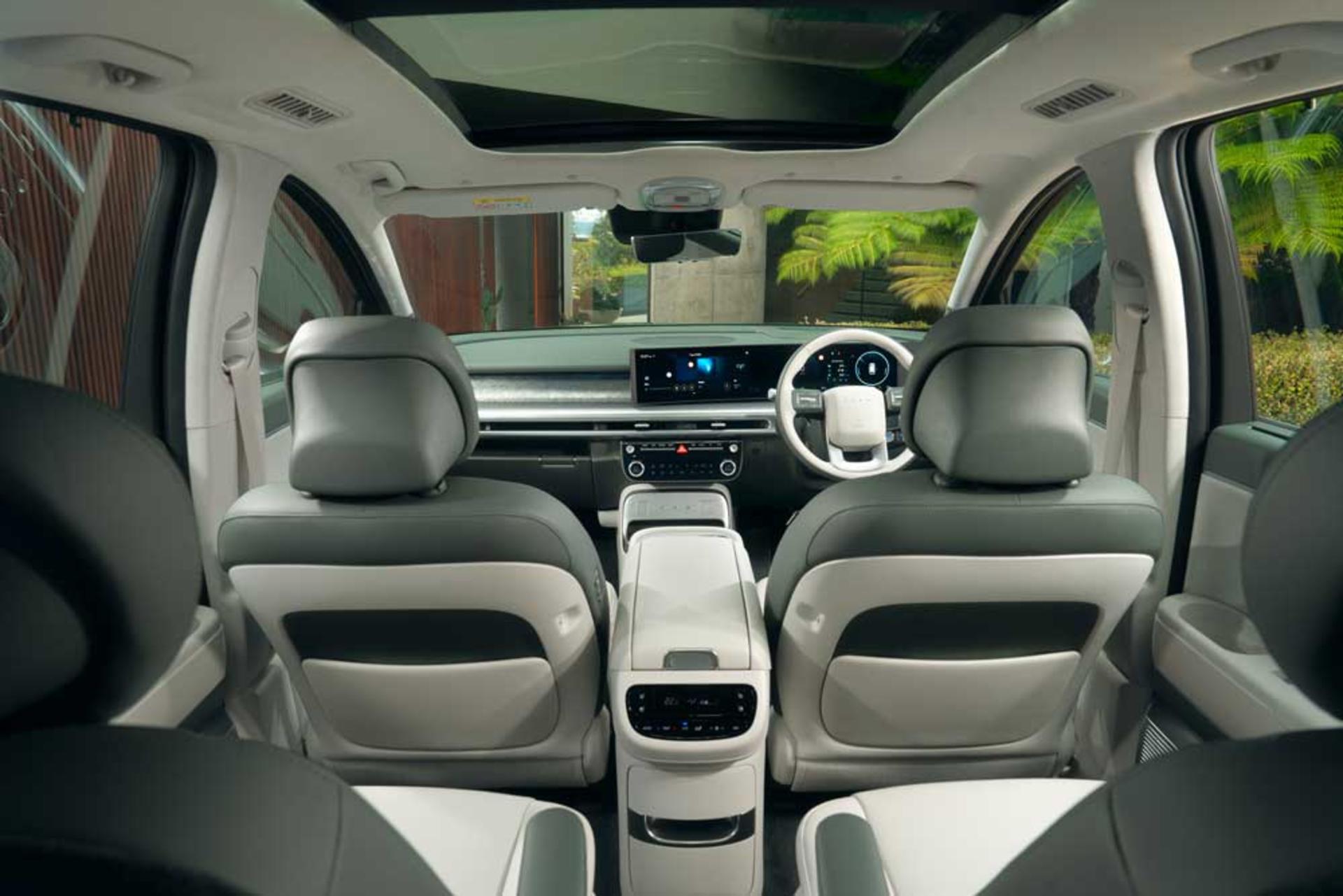 The flexible 18-litre sliding centre console provides handy stowage, while USB-C ports in every row (six in total) ensure everyone stays charged. The vehicle-to-load (V2L) feature also allows you to power camping gear or laptops from the car itself.